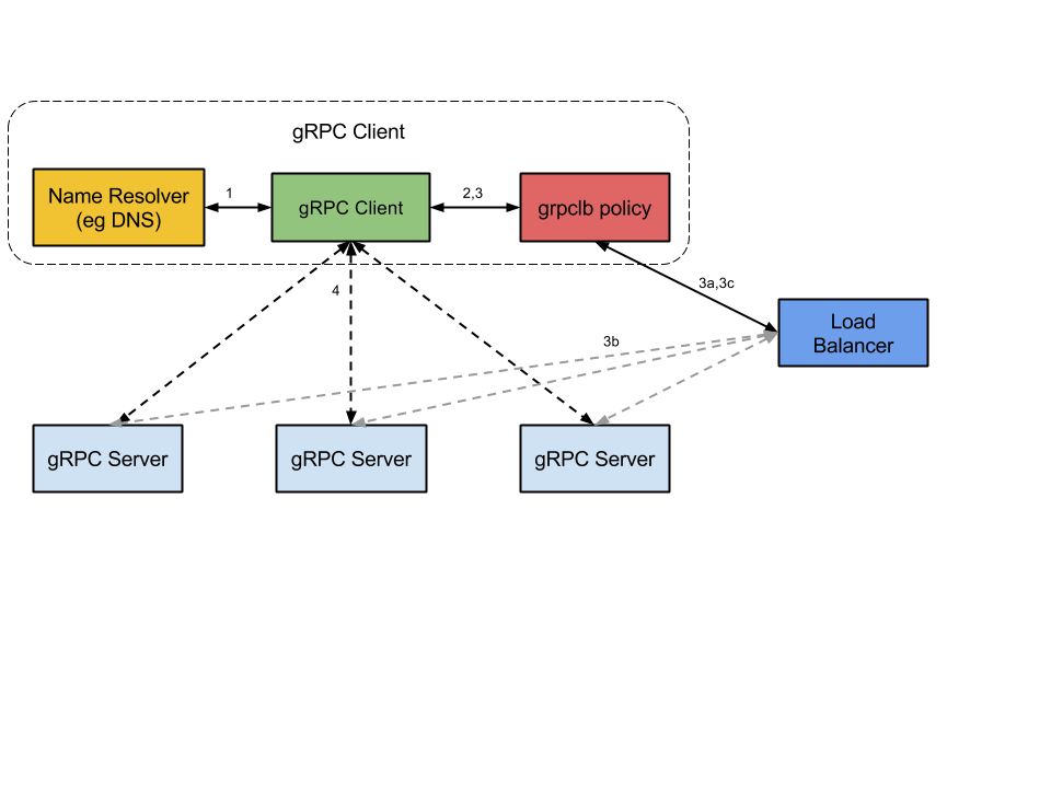 round_robinorgrpclb). - The client instantiates the load balancing policy.