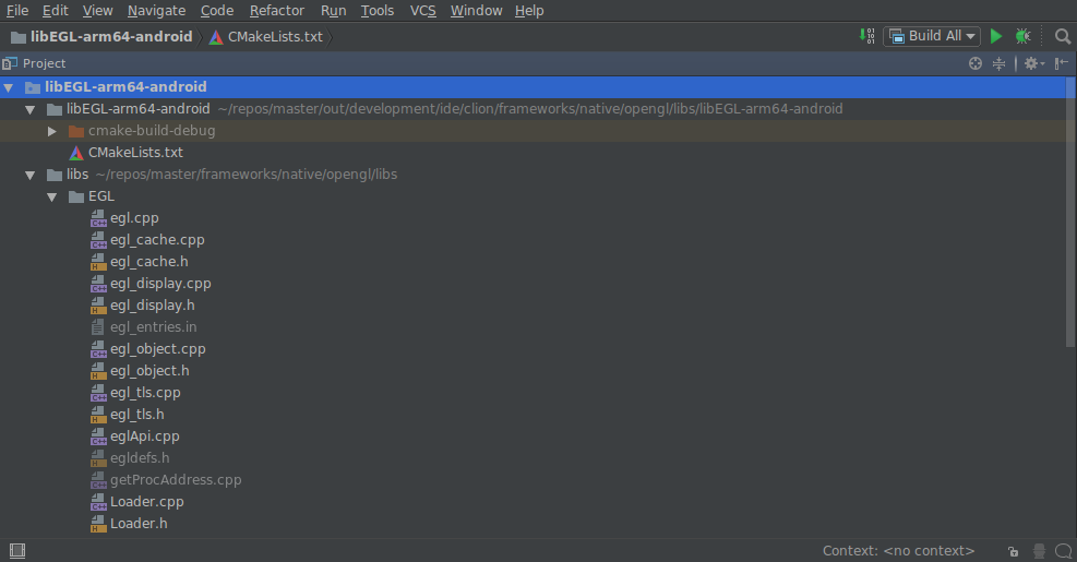 These file will be symbolicaly linked in out/development/ide/clion. All folders will also be created there.